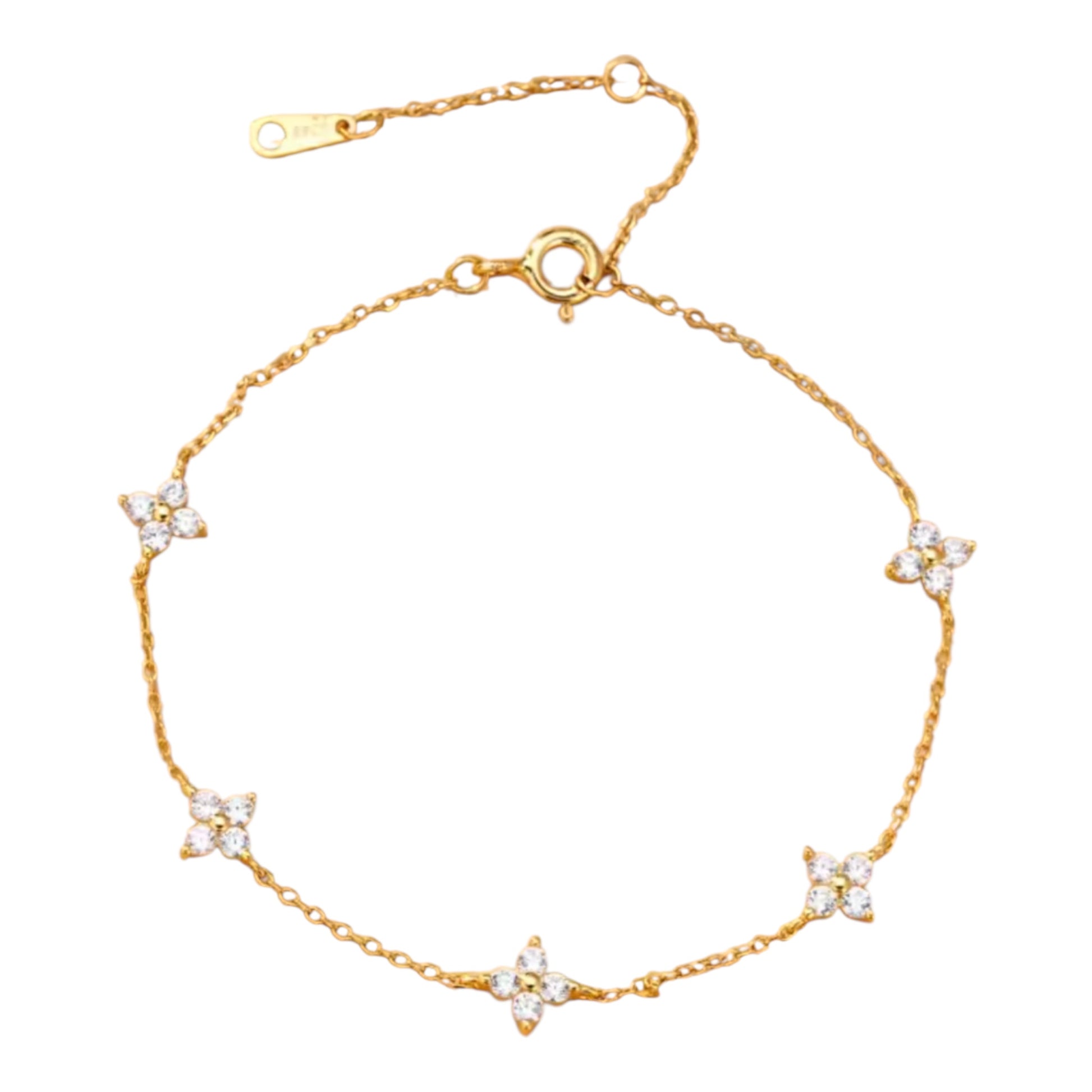 Simple and elegant stainless steel bracelet featuring a sparkling AAA+ zircon in a four-petal flower shape. Its minimalist and delicate design adjusts easily for a perfect fit, adding a refined touch to any outfit.