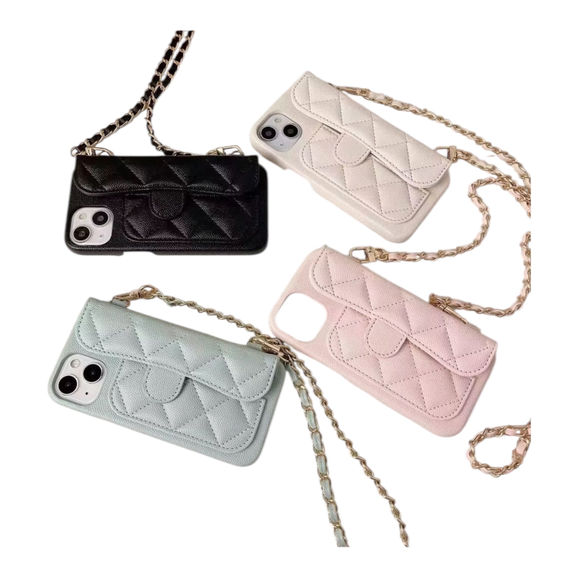 Coque iPhone matelassée avec chaîne – Multi couleurs