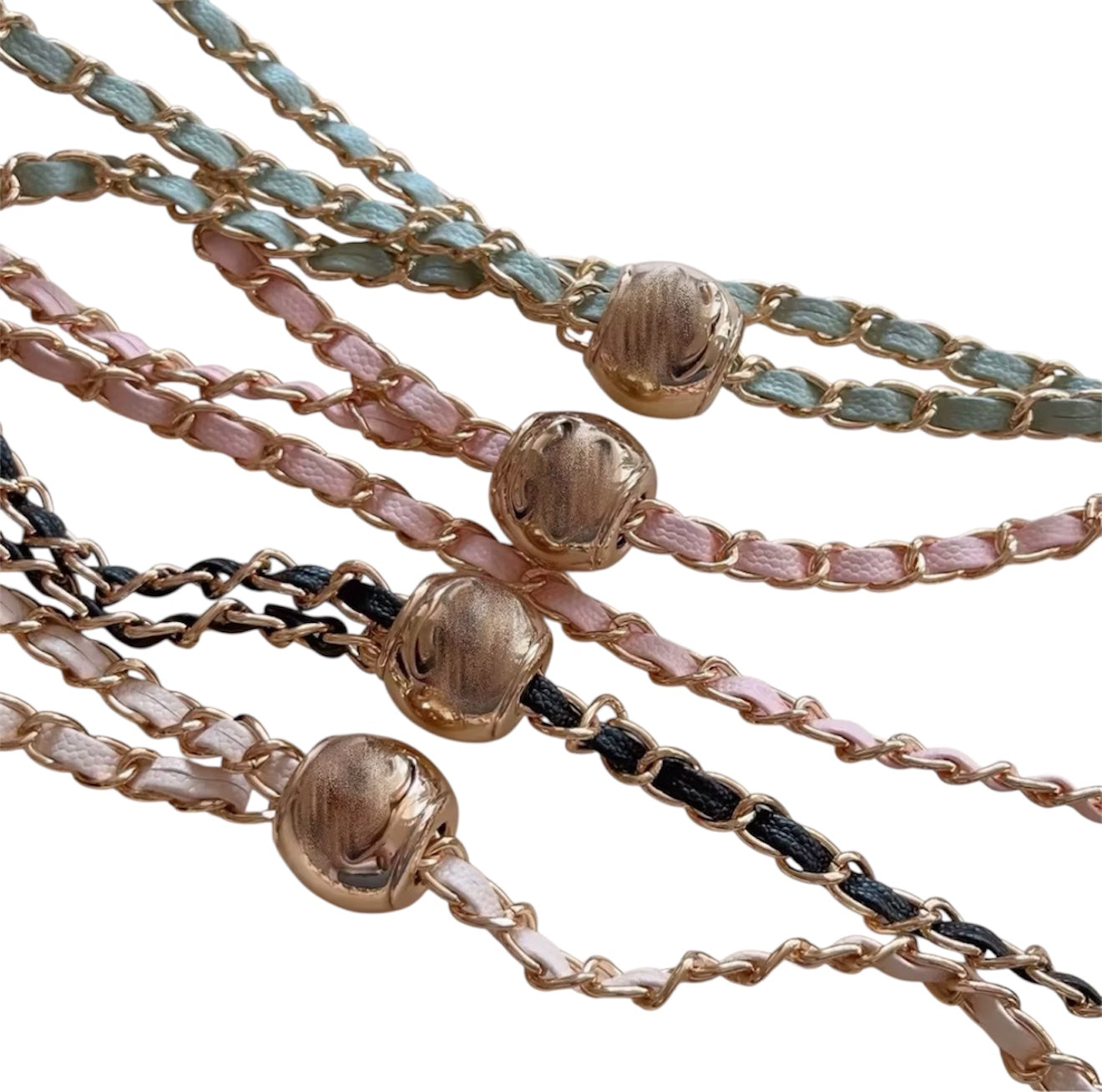 - Chaîne dorée entrelacée (amovible)
